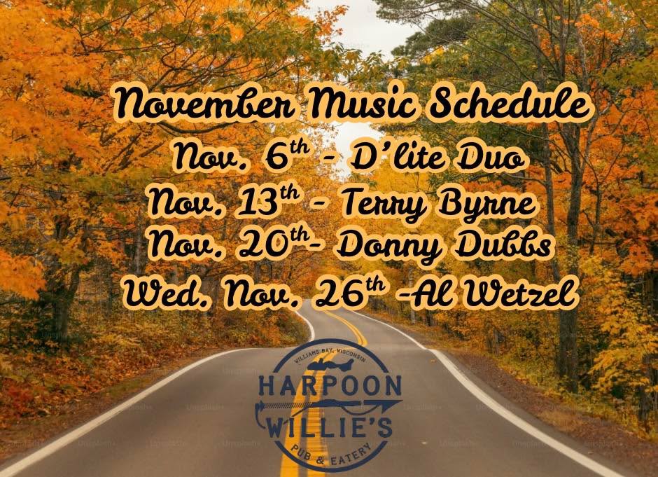 Your November Music Schedule is here!! From 8-11 on Thursdays. Big Al Wetzel is playing Black-out Wednesday this year!!