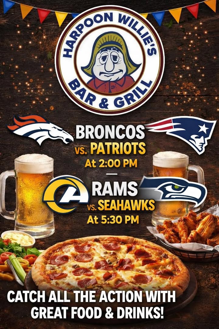 The Super Bowl is one week away! Looking for somewhere to watch it? Come to Harpoons for all the action. Free Jell-O shots every touchdown, complimentary nacho bar, commercial bingo, and much more! You won’t want to miss this.