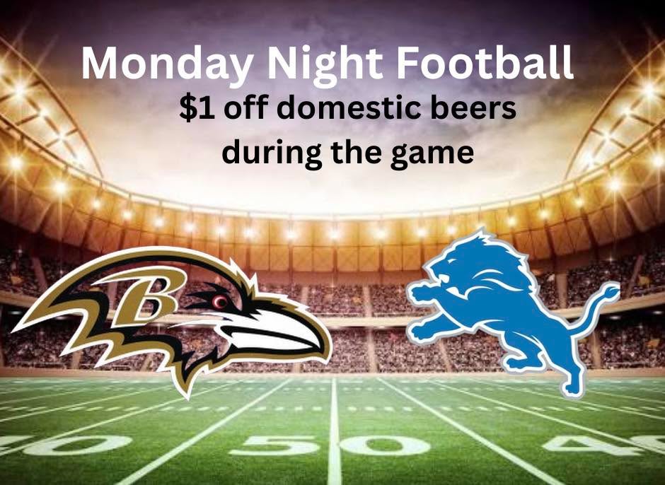 Monday Funday! Come in tonight to watch the game! $1 off domestic beer bottles.