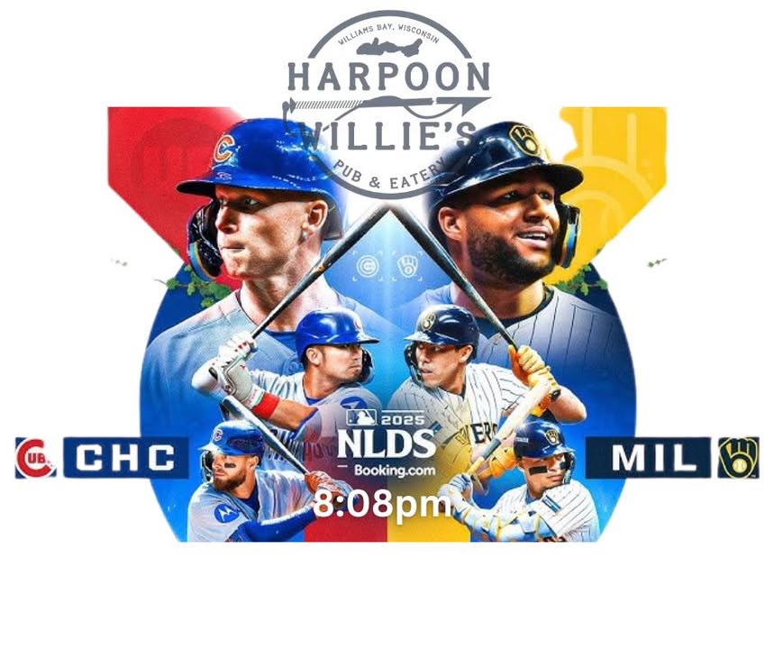 Cubbies VS The Brew Crew @ 8:08. Come in wearing your favorite team and get a free shot of apple pie!!